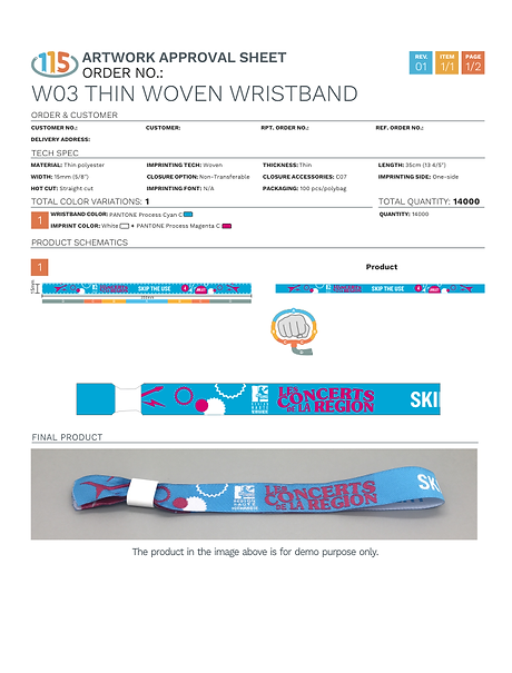 Your design is woven into the fabric with threads (similar to embroidery process). It makes your design elegant and lifetime durable. Suitable for single color or multi-color design.